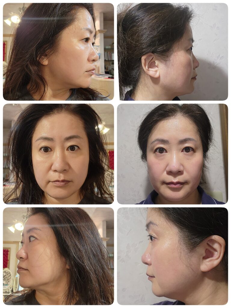 施術から2〜3週間経つころから、フェイスラインがすっきりしてきた実感が。鏡を見るたびにたるみが気になっていたあごのラインが、心なしか引き上がってきた感じがします。